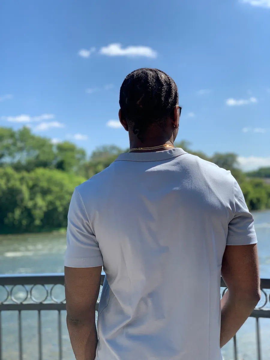 I wear this shirt every week, and the quality is outstanding. It has maintained its shape and color after multiple washes. The fabric is soft and comfortable, making it perfect for everyday wear. The grey and white colors are both very elegant and versatile. I am very happy with this purchase.